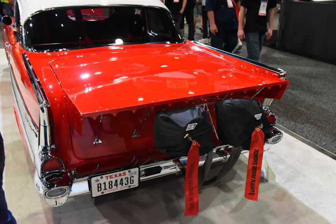 Eaton today introduced its Twin Vortices Series TVS X3100 supercharger for aftermarket applications. The only unit ever showcased came affixed to a kit from Magnuson Superchargers in a gorgeous 1957 Chevy Bel-Air on display at Eaton’s SEMA booth. A fully built show and drag car called “Big Nasty” has been blessed with the first TVS X3100 supercharger production unit ever to be shown.