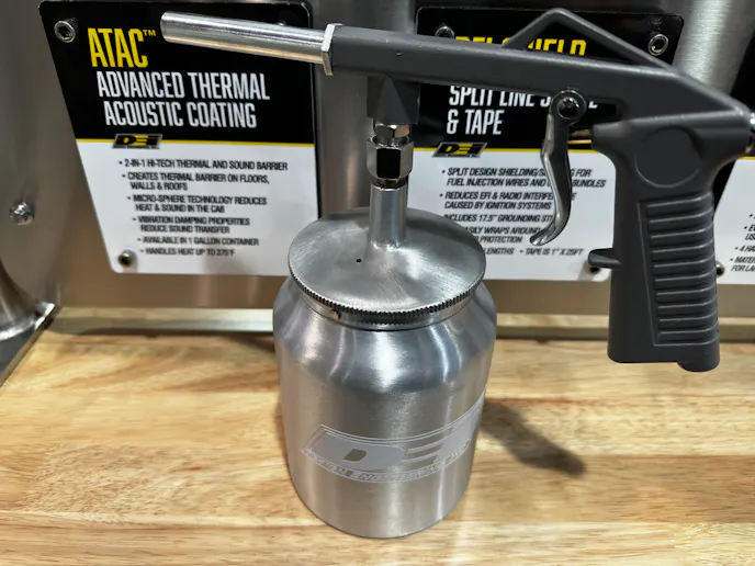Applying ATAC to a surface is like painting. Ensure the surface is clean and dry. If starting with bare metal, use a primer first. DEI says that ideally, ATAC should be applied 16mm thick, but thicker than that is OK. It can be applied by brush, roller, or spray. As a matter of fact, DEI has a brand-new sprayer that will work great for applying ATAC. The sprayer was also unveiled at the 2023 SEMA Show. ATAC is available only in white, but the company says it can be tinted by a paint store to the color of your choice.