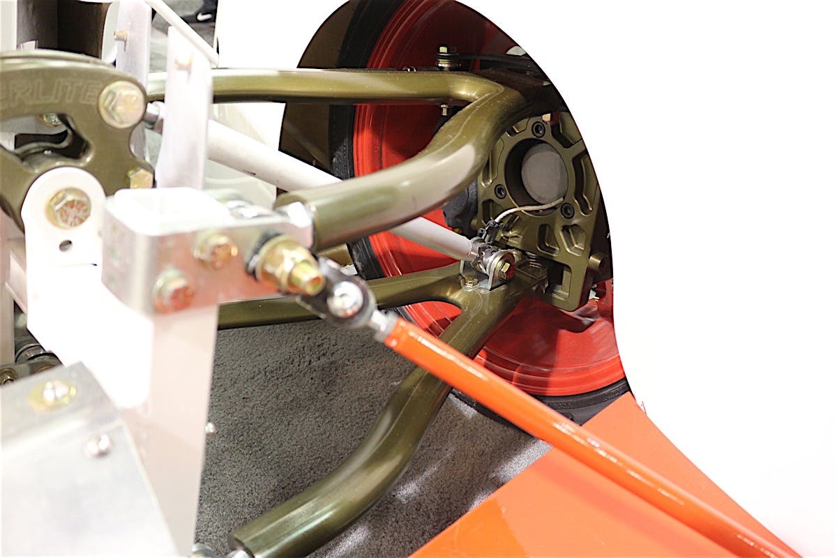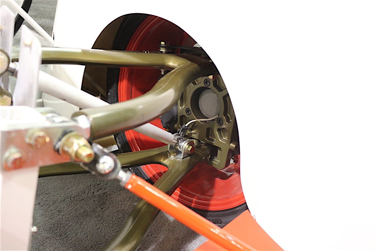 With a mid-engined layout, packaging other subsystems was paid equally great attention. The Aero features pushrod-bell crank suspension and swaybars at all four corners – keeping unsprung weight down and sprung weight more centrally located inboard. Penske shocks provide damping, Wilwood 6-piston brakes provide stopping power and the chassis and cockpit are engineered to accommodate a driver up to 6-foot 4-inches tall.
