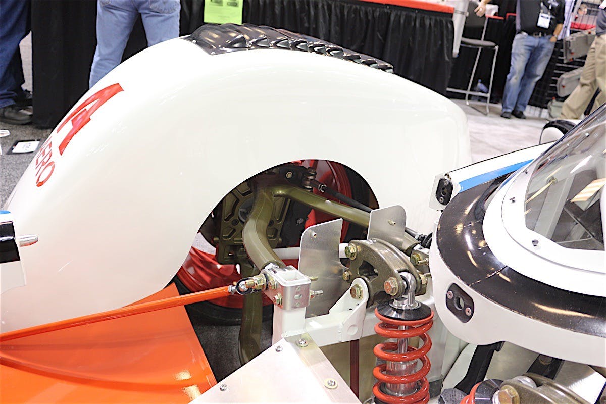 “This is one of 18 different models of cars we manufacture, all different. We have two companies, one is Race Car Replicas where we build GT-40s, Lola T70s, Porsche 917s, and then Superlite Cars are my original design; we have the Superlite Coupe, an off-road Baja truck, and this car.”