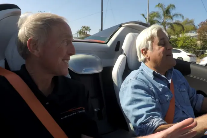 In this video, the car in question being the newly-released Corvette C8 convertible that he and Corvette Chief Engineer, Tadge Juechter take for a spin around Jay’s home stomping grounds. The video was shot the week following the reveal of the C8 convertible at the Kennedy Space Center in Florida. Tadge admits that Jay is the first person outside of GM to drive the all-new, mid-engine convertible.