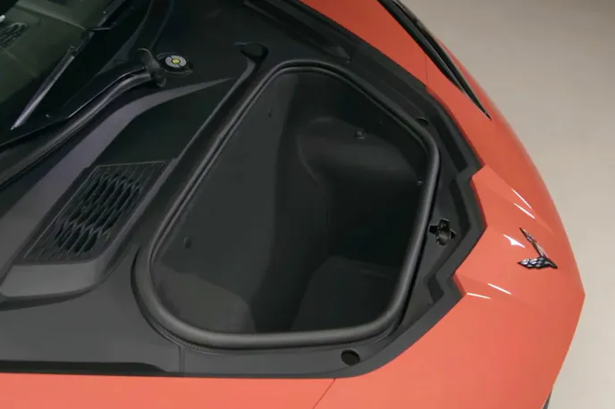 In this case, since the top is removable on both the coupe and convertible, even the coupe is considered a convertible by the regulators. In Tadge’s words, they, “needed to design both VERY tightly together.” Of course, now both pop- and drop-top versions have a hard shell over the occupants. The self-powered, hard-top convertible system is a very sophisticated mechanism, adding about 80-pounds to the car. Chevy engineers thought about doing a soft-top, but the C8’s competition is all using hard-tops. Tadge admits that it is harder to stuff a hard top than it is a foldable soft top, especially when you keep it in the engine compartment.