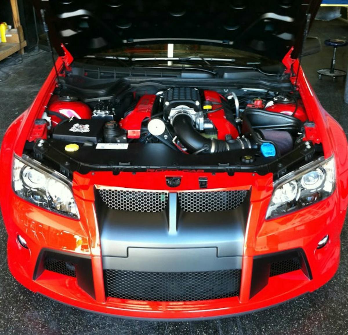 In order for the G8 to achieve those numbers, the L76 had to go under the knife. Even though it retains its stock rotating assembly and block, the factory cylinder heads have been milled and stuffed with LS7 lifters, a Comp Cams bumpstick replaced the original unit, and a Magnacharger TVS 2300 supercharger featuring a cog rear pulley setup replaced the intake manifold.