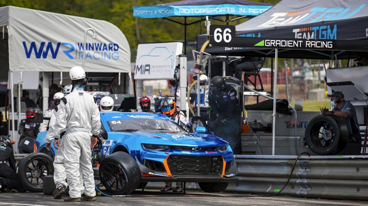 The racing format for the IMSA Michelin Pilot Challenge series is multi-class, endurance, road racing at tracks all across North America. The two classes are Touring Car (TC) which are vehicles like the Honda Civic Type-R’s and Hyundai Veloster N’s, and the faster class, Grand Sport (GS), where the Camaro GT4.R lives. Because the races have a long format, like the recent 4-hour race at Watkins Glen, each car has two drivers. The Camaro has a 19.5-gallon fuel tank and can last on track for up to 50 minutes. Team TGM practices its pit stops to ensure the driver swaps are done in around 26-seconds. Pit stops allow the teams to fill with fuel, swap out for four new fresh Michelin S8M race tires, and replace the driver. Each driver must drive at a minimum of 40 minutes in each race before swapping drivers.