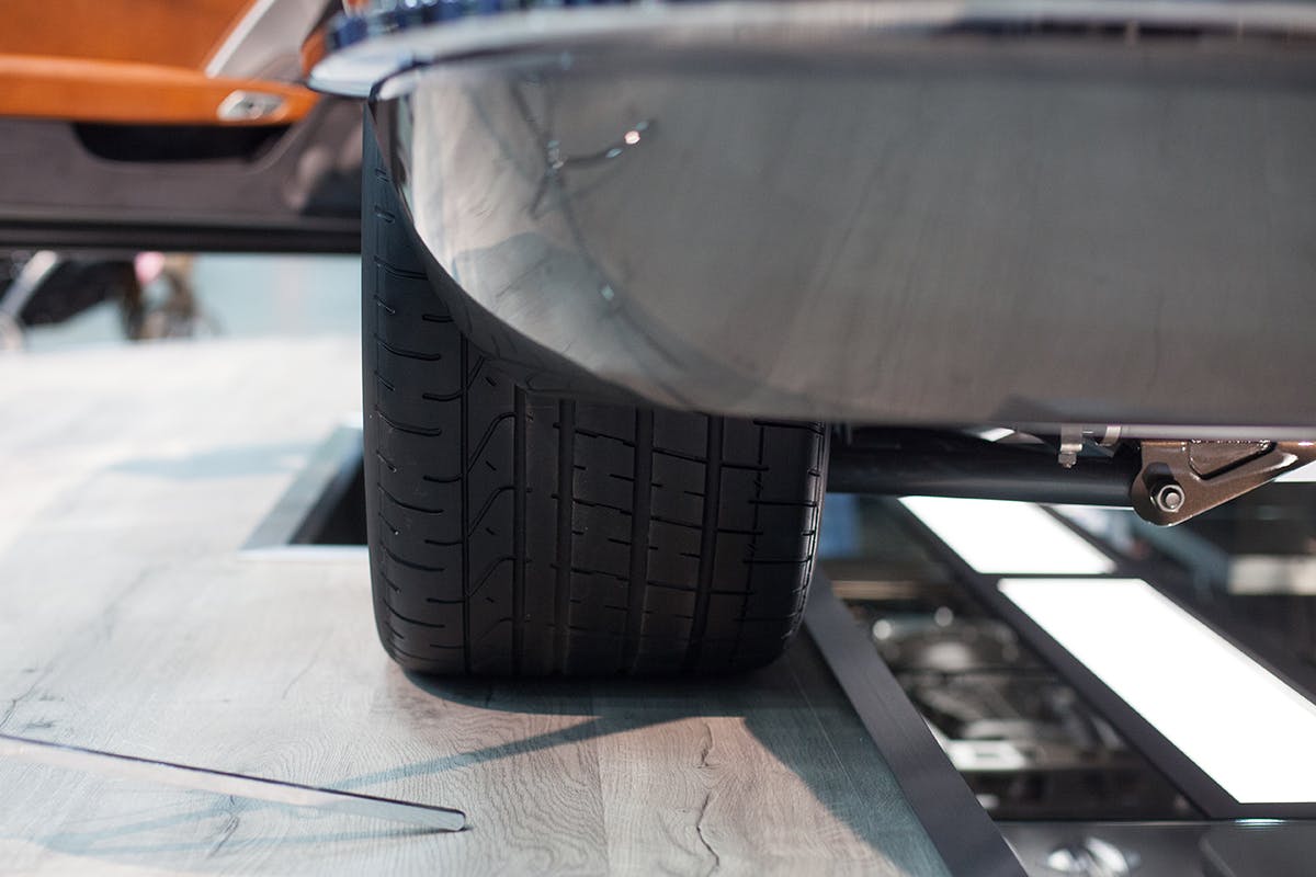 The wheels are one off 18 inch pieces designed in house by S.A.R. and the 245/255 inch rubber wouldn’t fit under the stock fenders so those have been widened ever so slightly.