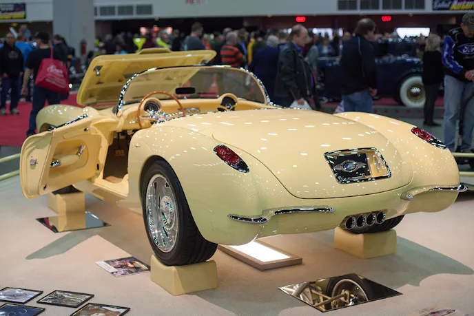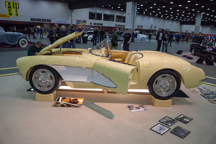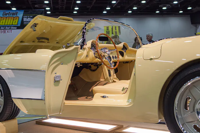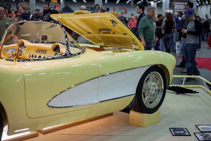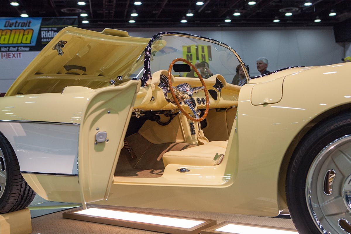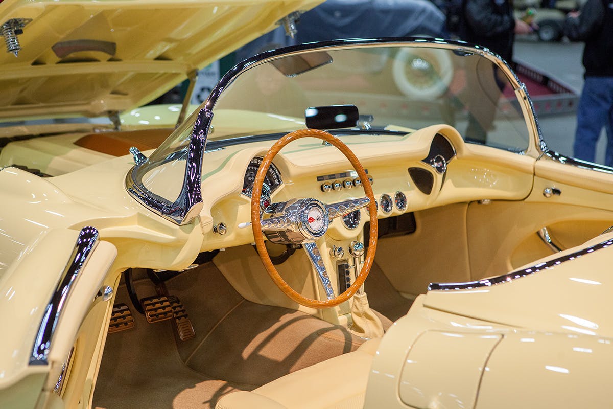 Steve’s Auto Restorations or S.A.R. was the talk of the venue after their Renaissance Roadster took home the 2017 Ridler honors. However the hand made aluminum roadster wasn’t their only build at the show, their Panama yellow ’57 Corvette was a resto-mod build of the highest order.