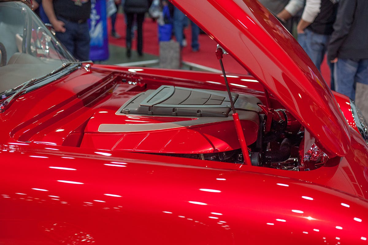 Additional body modifications, that almost go unnoticed due to their factory like execution, are a C2 inspired hood scoop, a ’53 trunk lid, and a ’53 windshield frame.