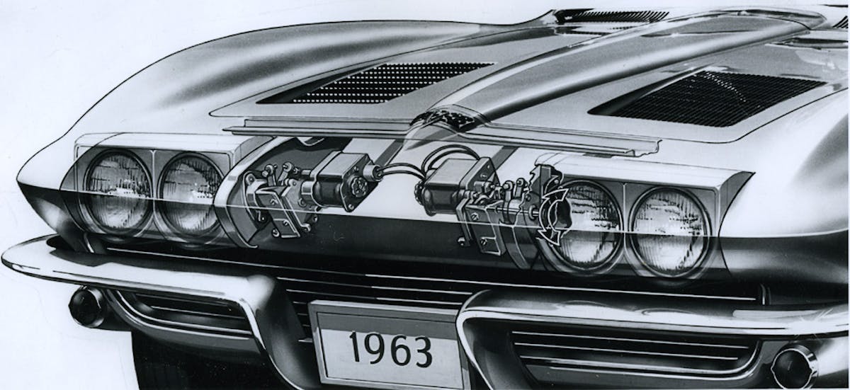 HIDDEN HEADLIGHTS – The first era of hidden headlights began in 1963. Make sure they operate in unison and don’t suffer from winking eye syndrome. C2’s have electric motors, unlike C3’s vacuum operated units.