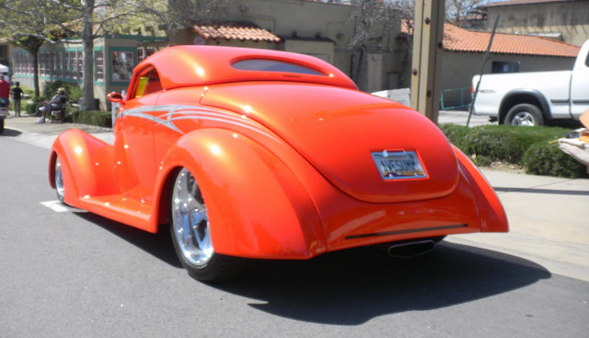 Temecula is known for its wineries and the hot air balloon festival, but twice a year the streets of old town are packed with approximately 500 hot rods of all makes and models. A dizzying array of vibrant paint schemes, chrome and billet overwhelm the senses, but occasionally a car stands out from the masses beckoning a second, third or tenth look. Parked along a side street was just such a machine with its eye piercing orange paint job. It is hard to miss a bright orange ’39 Ford Roadster with more bling than a hip hop artist. After spending a considerable amount of time drooling over the ’39, a gentleman introduced himself as the owner of the car appropriately named the Orange Smoothie. Doug Bingham of Yuma, Arizona is the proud owner of this ridiculously sweet rod.