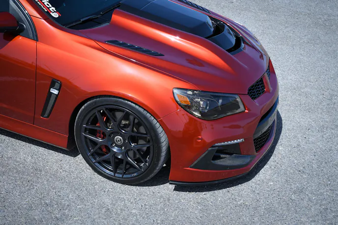 The Chevy SS’s color was already an eye-catcher, so Roshan simply added some carbon highlights and contrasting colors to make things pop. A hood was custom-made by Street Concepts, and a Holden Special Vehicles ClubSport front bumper and Maloo-style side skirts were added by Bell’s Autosport in Huntington Beach, California. Inside Roshan’s ride is a touch of tasty mods in a sea of factory-fresh components. The upholstery is entirely stock with the addition of a single Aeroforce Technology gauge mounted so Roshan can keep an eye on the boost.