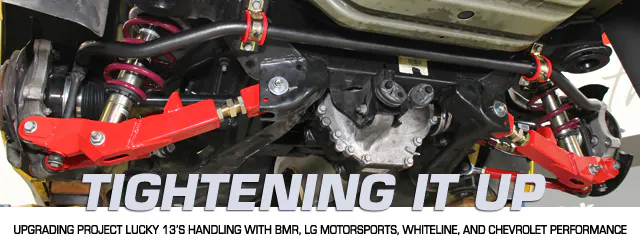 Installation of BMR’s sway bars and arms, Whiteline’s bushings, LG Motorsports’ G5 chassis bracing system, and Chevrolet Performance’s ZL1 HD Driveline Kit was quick and painless — although it did help that Lucky 13 is a theft recovery and was missing a laundry list of parts. That gave us quite a bit of breathing room while installing the components.
