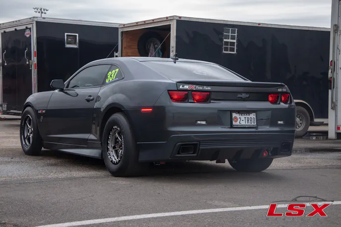 Larry got into racing due to the popularity of the fifth-gen Camaro and the people around him. He states, “I attribute my racing career to the massive car scene that exploded around the new Camaro, and the people that I met ended up feeding my enthusiasm.” Larry continues, “In particular, my best friend Owen Priest, who is a brilliant chemical engineer who also ran a performance shop for almost two decades. He’s the evil genius behind the evolution of my car, though my penchant for perfection has been a major pain in his ass along the way!”