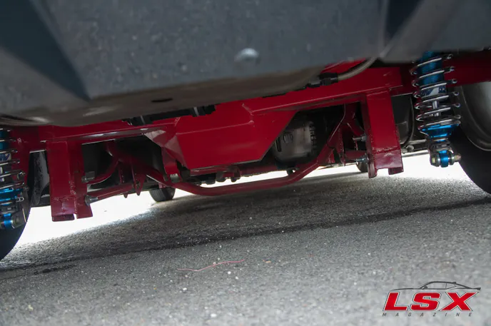 Larry ditched the factory six-speed transmission in favor of a custom 4L80E transmission built by Advanced Racing Dynamics. A 3800 RPM stall speed Circle D Specialties billet 265mm Pro-Series torque converter connects to the engine with a Raptor SFI-rated flexplate. To keep the 4L80 cool when the Jake’s transbrake is activated, Advanced Racing Dynamics added two auxiliary transmission coolers.