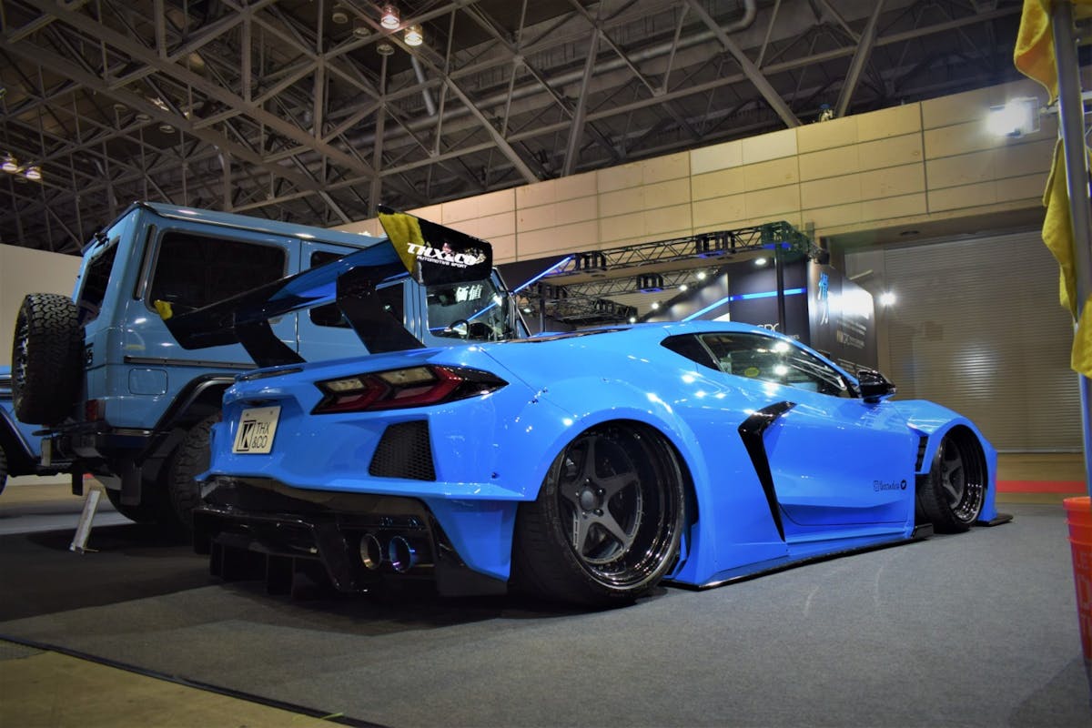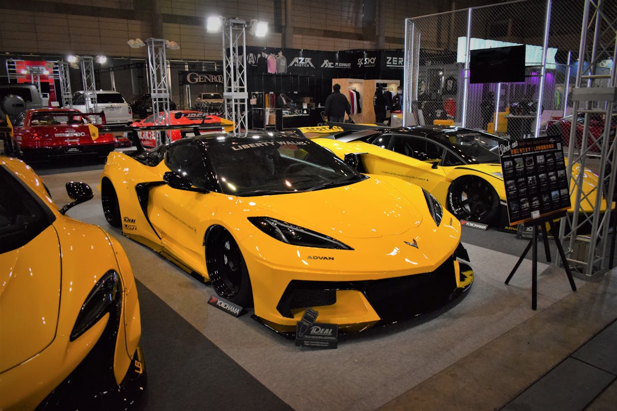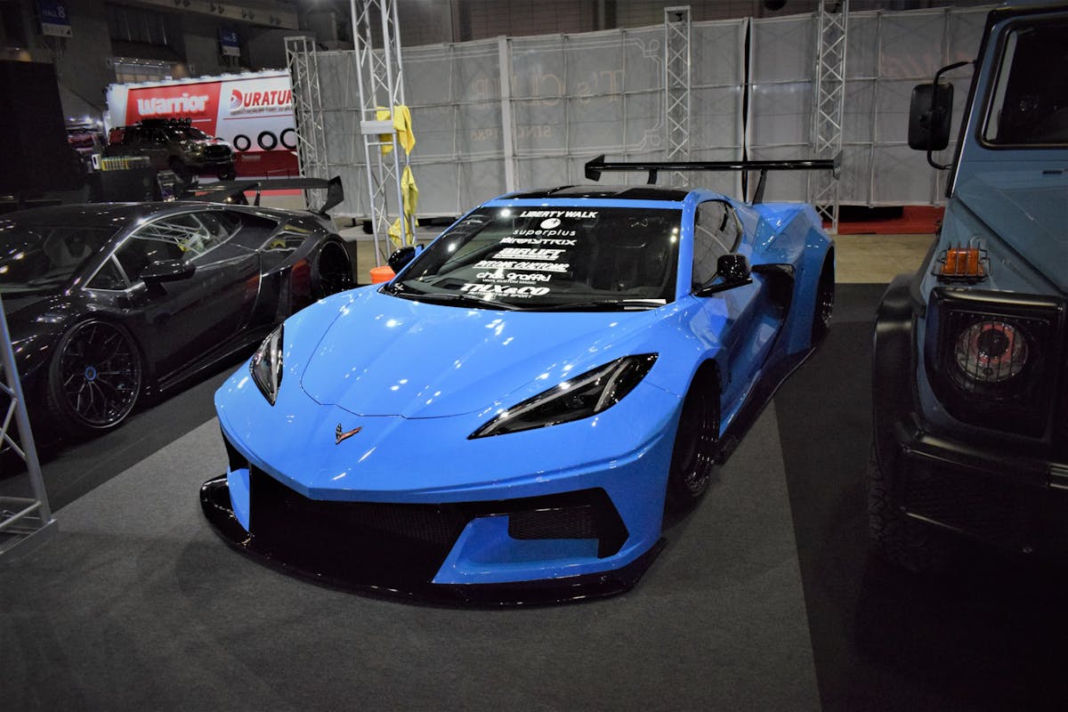 Liberty Walk LB-Silhouette WORKS GT C8 Corvette aero kits on display at Tokyo Auto Salon 2022. Photo Credit: Micah Wright
