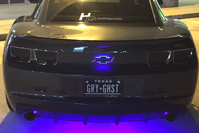 Next came the Inferno Orange Bow Tie on the grille. That wasn’t enough, so she had orange liberally splashed in the engine bay. Halo lighting, also in a bright orange shade, came next. With many orange and black Camaros out there, hers still didn’t stand out enough, so she had a custom hood liner with a “survivor” graphic added and big light up “survivor” display added to the trunk.