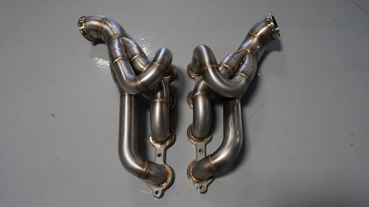Vengence Racing was responsible for every inch of this killer build. Sitting on top of the Mast Mororsports heads is a billet Late Model Engines (LME) intake connected to not one, but two Precision Turbo 76/75 turbochargers. Vengence took care of the complete custom turbo system and fabricated everything to perfection from scratch. This includes a custom the air-to-water intercooler, exhaust manifolds, turbo hot and cold side, and a custom exhaust system complete with cutouts. After the fabrication precess was complete, the hot and cold side were both sent to powder-coating before being reinstalled.