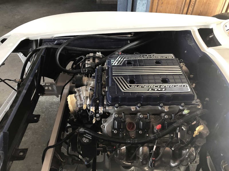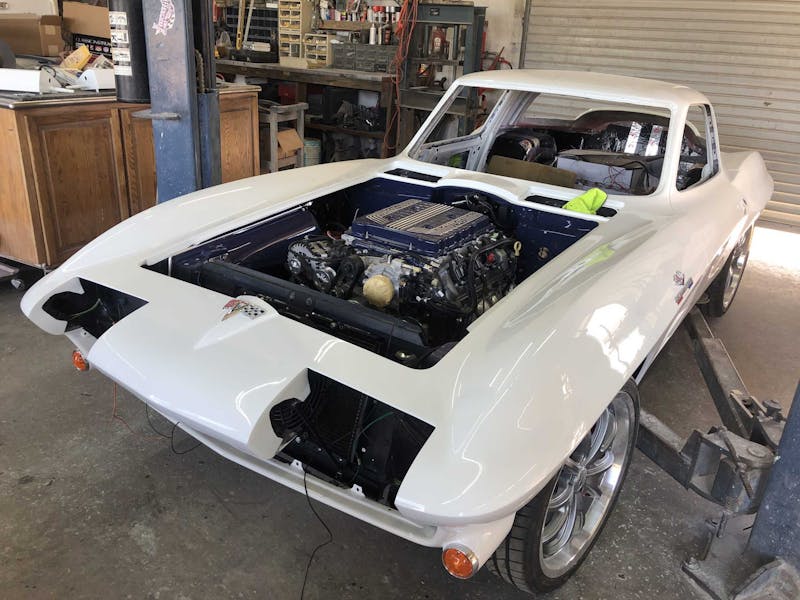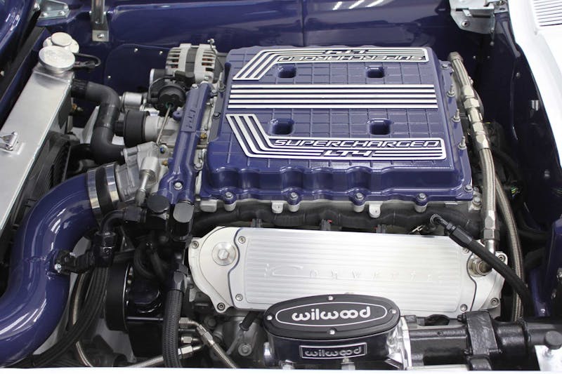 As you can imagine, Kevin would not have been happy with decades-old performance while surrounded by the modern look and feel of a much newer Corvette. A complete Street Shop chassis full of C7 components and fitted with a supercharged LT4 engine and six-speed transmission was ordered to rectify that. The craftsmen at Street Shop raised the C7 suspension’s mounting points on the new frame to allow for a lower ride height once the body was installed. The lower stance is just the tip of the iceberg of the many almost imperceptible details that add up to make this resto-Vette a success.