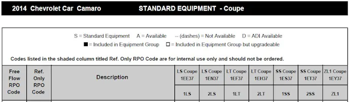 With the web abuzz about the rebirth of the Z/28 and updates to the full Camaro line, it’s time to get down to the details with the help of the 2014 Camaro Online Order Guide. Thanks to the guys over at camaro5.com, you can download a copy of the 82-page guide, which comes complete with standard equipment details, available options, and RPO codes for the LS, LT, SS, and ZL1 trims. Notably absent from the guide is the Z/28, likely because it’s not expected to hit showrooms until early next year.