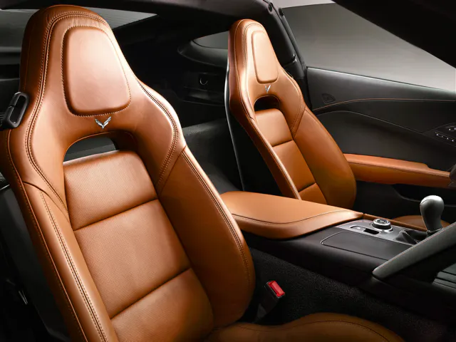 Unlike many sports cars, the 2014 Corvette actually gained 90 pounds over its predecessor, and 11 of those pounds went into a heavier, sturdier seat. The Corvette C6 had thin, lightweight seats that were the source of much griping, so GM installed aluminum-and-magnesium seat frames that are thicker and are through-bolted to the chassis. This makes the seats more rigid and less likely to creak or shift during high-speed cornering.