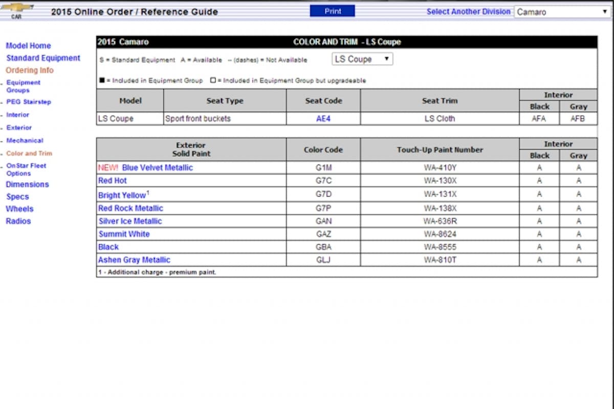 If you’re planning on buying a 2015 Camaro, then this guide, intended for dealer use but available online, will be extremely helpful. The opportunity to inspect each of the option groups and what’s included without the pressure of a salesman trying to get you to sign on the line is very helpful – and you’ll be able to walk into the dealership as an educated consumer and not be pushed into purchasing one of the cars on the lot simply because it’s what they have available.