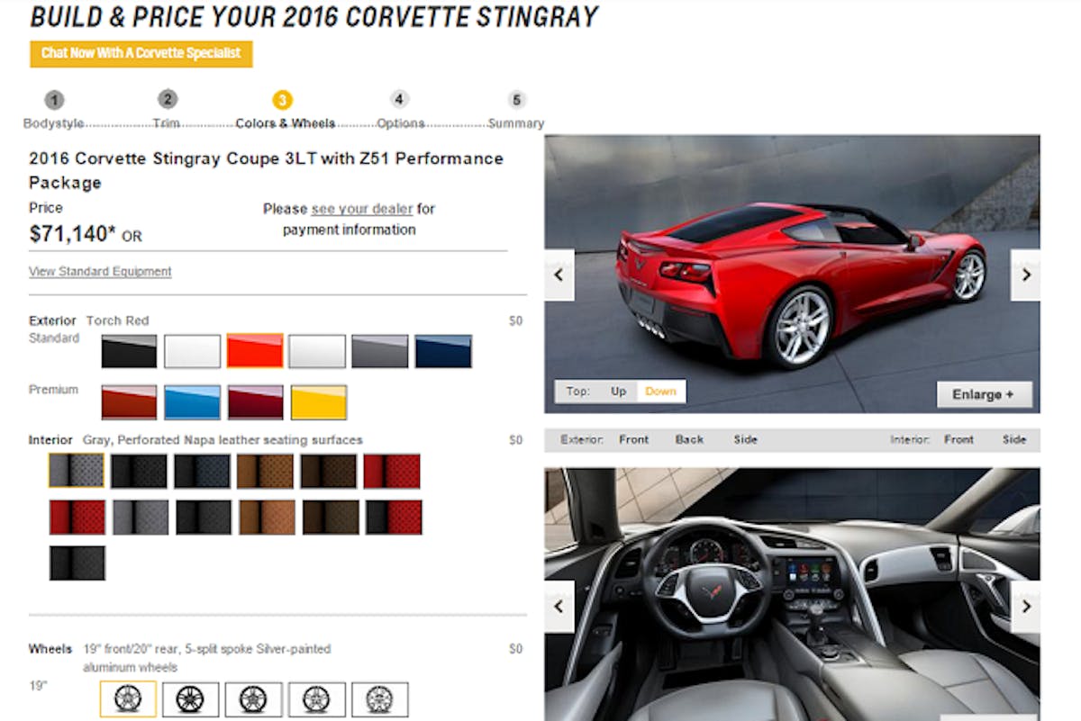 With the 2016 Chevy Corvette configurator going live last week, maybe we’ll find a little more motivation to make this month’s corporate goals. Let the dreaming commence.