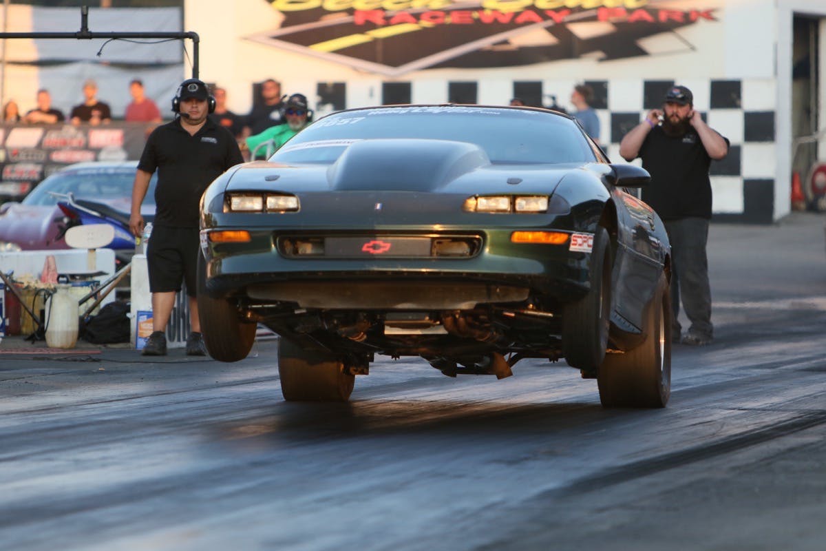 Drag racing kicked off at LS Fest with an open test and tune which ran the better part of the day. At 3 p.m. qualifying for all classes commenced and ran late into the evening. During test and tune, Sketchy ‘Vert made a few passes trying to dial in his new twin-turbo Huron Speed setup. Living up to its name, the car was all over the track though it eventually made it across the finish line in one piece.