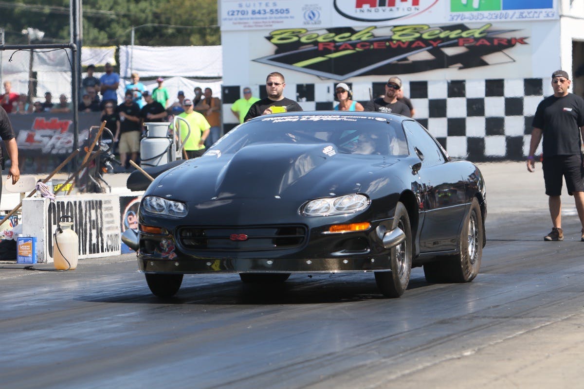 Wiseco Real Street is an eleven-car field, with limited power adders of all forms and even 1-2 all motor cars running the 1/8-mile. Jessie Coulter once again leads qualifying on his home track, with a 4.675 at 151.78 mph in the record-setting, single turbo ’91 Camaro. Nicholas McGrath in the turbo Fox-body is less than a tenth behind him (4.75) and owns the highest MPH (151.94). Fran Schatz is not out of it by any stretch, cracking the top three with his ProCharged C6. At 145 mph he appears to be down a few ponies, but is pretty quick out of the hole as indicated by the 4.88 e.t. Bill Trovato and Ron Belcher’s nitrous combos trail him, as does Adam Preston who is dusting off RPM’s turbo fifth-gen. Speaking of RPM, Camren Massengale owns the fastest sixty-foot (1.11) but hasn’t put a full pass together yet. Look for the nitrous C5 to crack the top five tomorrow.