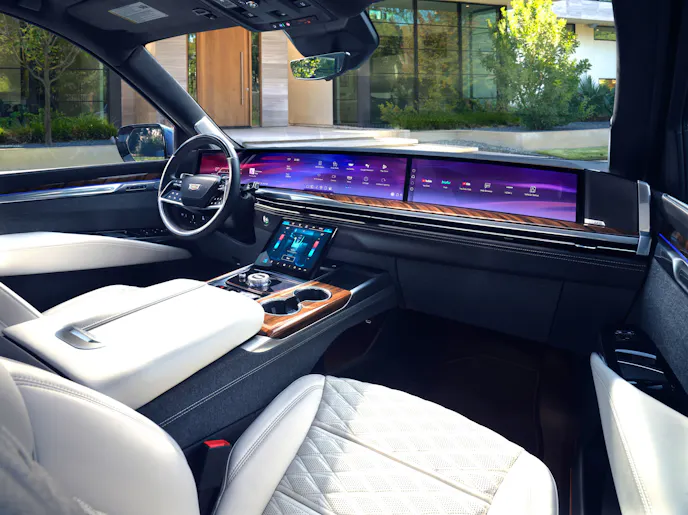 One of the standout features of the Escalade-V is its advanced infotainment system. This mirrors the setup that bowed in on the EscaladeIQ EV, and the result is stunning. A 33-inch curved OLED display spans pillar to pillar and is the central hub for all multimedia and navigation functions.