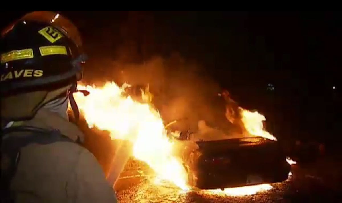 Sarcasm aside, finding a 4th generation Camaro fully engulfed in flames all-alone in parking lot at 5am on Sunday seems a bit odd. What’s even more disturbing is that this Camaro fire could be part of a string of arsons in the area. Blevins stated this melted Camaro was found near the scene of other recent vehicle fires; he stated that the Camaro was found approximately a quarter-mile from the location of other recent vehicle fires. Whether or not this is the work of an arsonist, insurance fraud or just a really suspicious coincidence, the fire is still being investigated. From the video it appears that the 4th gen Camaro may have been a V6 convertible, but what is for sure is that the car is a total loss and its pretty disturbing to see the fiery carcass of a Camaro.