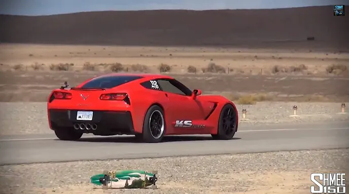 This C7 apparently built by KS Tuned does a few passes at a desert strip during Airstrip Attack 7. Despite a few bobbles, this car sounds pretty mean and really takes off once it finds the traction. Again, you may notice some driver errors in the video, and for good reason.