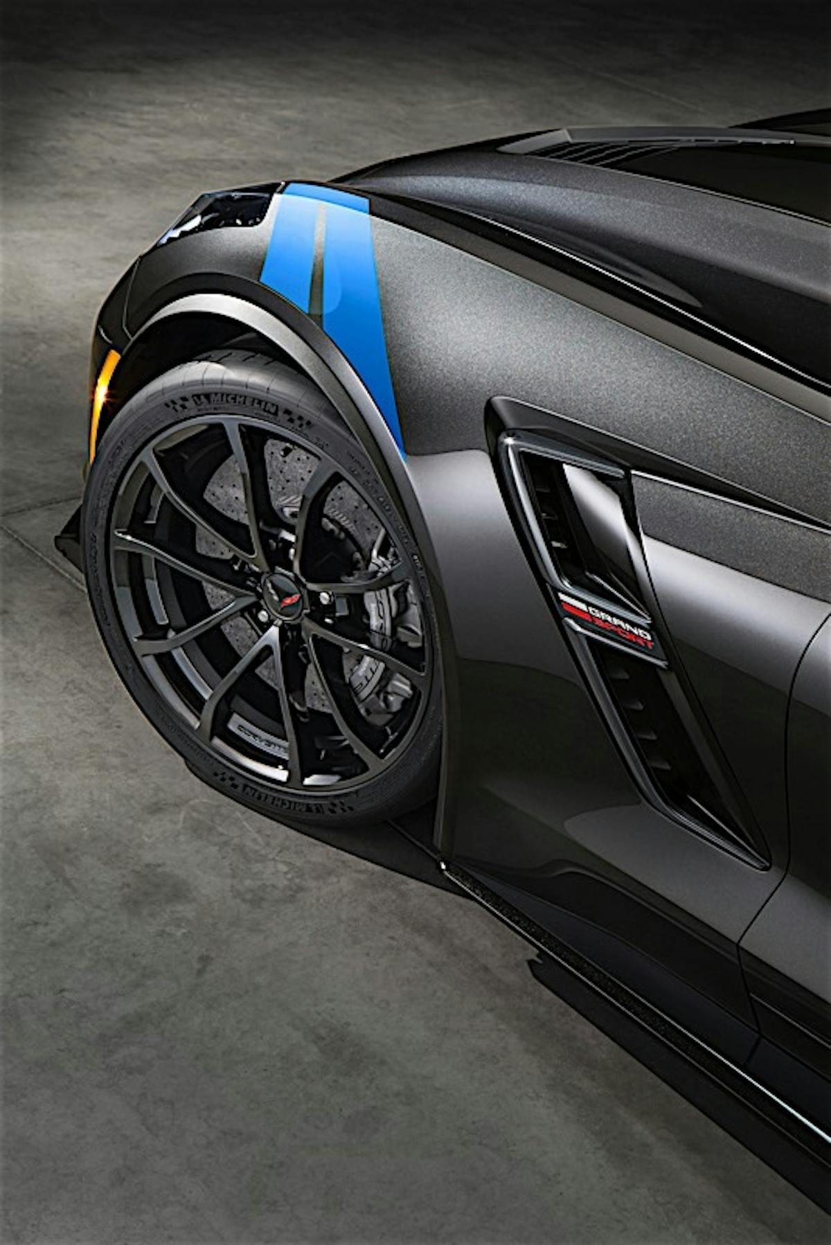 The new 2017 Chevrolet Corvette Grand Sport combines a lightweight architecture, a track-honed aerodynamics package, Michelin tires and a naturally aspirated engine to deliver exceptional performance. The Grand Sport Collector Edition features an exclusive Watkins Glen Gray Metallic exterior with Tension Blue hash-mark graphics, satin black full-length stripes and black wheels. the new Grand Sport combines a lightweight architecture, a track-honed aerodynamics package, Michelin tires and a naturally aspirated engine.