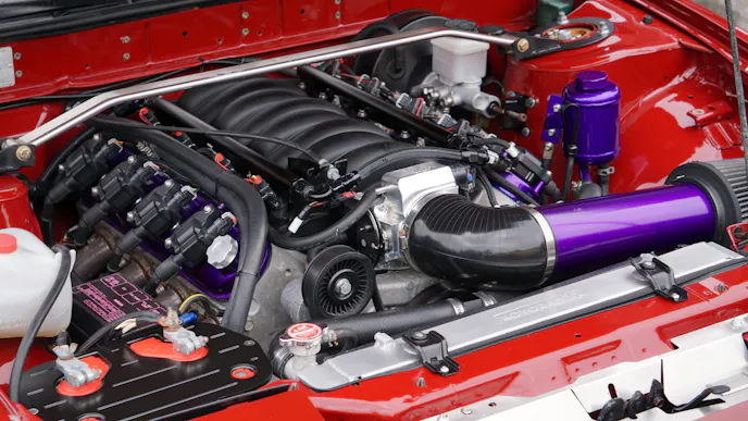 I know what you’re thinking, right off the bat is a pretty commonly performed LS swap. While swapping an LS engine into a 240SX isn’t uncommon, this build is still filled with amazing features. To start, its 408 cubic-inch stroker LS engine looks right at home as if this 240SX rolled out of the factory with it. The stroker short-block is paired with an LS3 top end and a heavenly-sounding custom camshaft from PatGTuning. Acting as the chef’s kiss is a TREMEC Magnum transmission. This thing runs and sounds exactly how you would expect it to, perfectly.