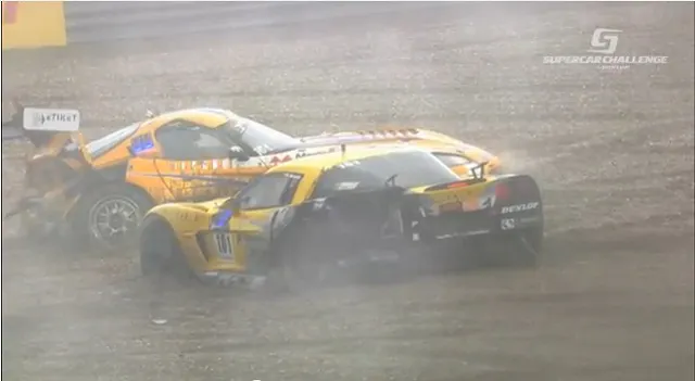 There’s nothing quite like piloting your rear-wheel drive Corvette in the rain, but add some race tires and a ton more horsepower, and we can’t imagine the kind of struggle it would be. But that’s exactly what racers in the European Supercar Challenge series had to endure last weekend, resulting in some pretty sketchy action. Yes, the race continued even with massive puddles on the track, which presented problems for many drivers, including Dodge Viper SRT10 GT2 driver Philippe Ribbens and Corvette C6R GT1 driver Rick Abresch. Abresch ended up crashing into Ribbens after both slid off the side of the track as a result. Check out the wreck in the Supercar Challenge TV video above.