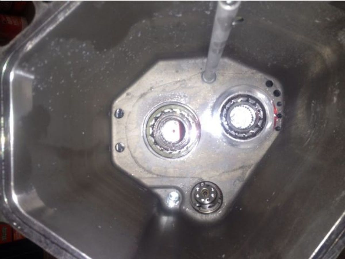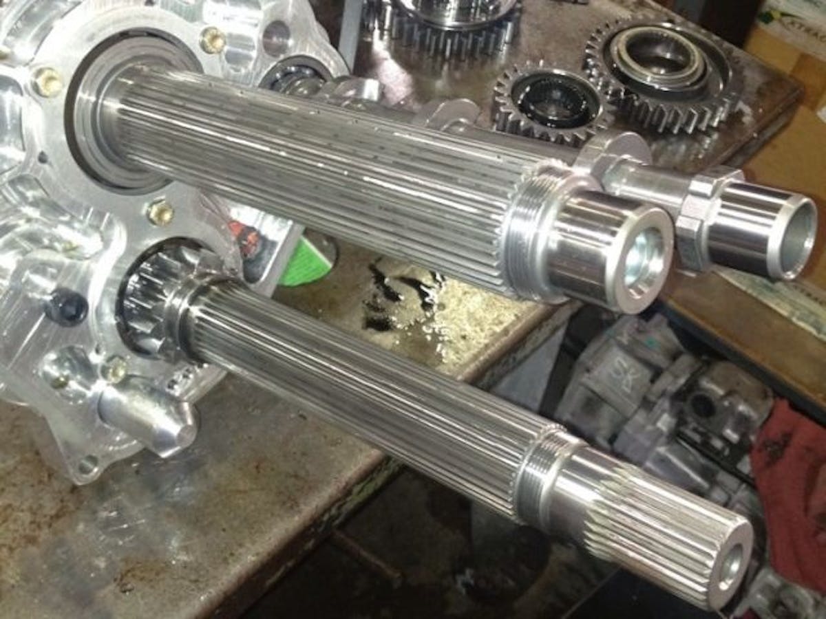 Probably one of the most interesting parts of the LG/Emco Sequential 6-Speed is the fully pressurized and filtered oiling system. The main shaft and shift forks are gun-drilled for oil passages, and a spray bar provides a steady supply of oil directly to the teeth of the gears. “The oiling system is set up essentially like an engine and creates between four and 12 PSI. The oil pump even works like a mini LS1 pump, but the system only uses two quarts of synthetic 75W90.”