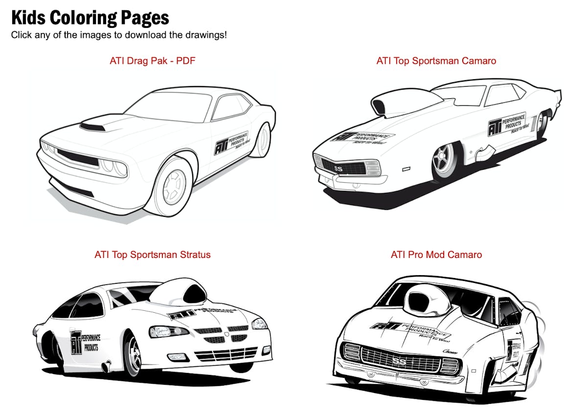 Since your kids are at home right now and are probably driving you crazy, you might as well find them something creative to do. While the Xbox and PS4 are a favorite pastime of some youngsters, listening to them whine and moan while playing Fortnight gets old for any parent, and trust us, we feel your pain. Instead of letting them scream at the TV in a blind rage, why not introduce them to the high powered world of drag racing? ATI Performance Products now offers downloadable coloring pages just for kids.