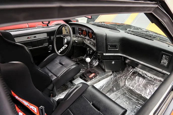 The engine isn’t the only compartment to be touched. Continuing the pro touring theme, the guys at Powerhouse Customs outfitted the Javelin with a complete IFS system and cross-member swap from Control Freak Suspensions to pair with a complete set of QA1 coilovers.