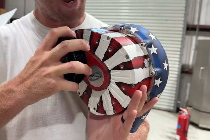 To replicate the original build, the car had to have a ProCharger. The company went above and beyond for the project, sending a special, one-of-a-kind “Freedom Edition” P1X head unit with a custom American flag graphic.