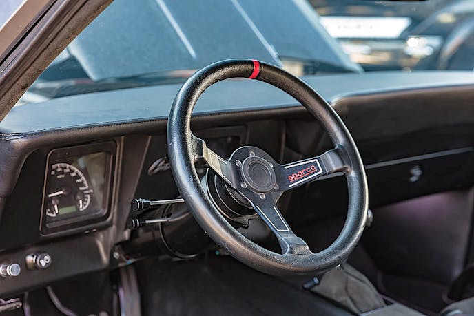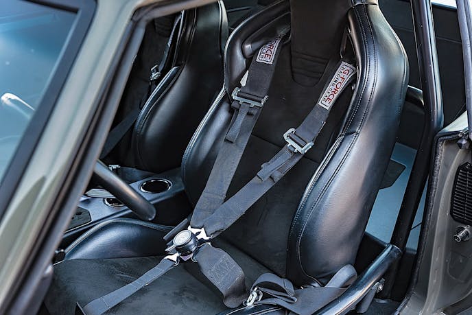 As part of a complete rebuild, the interior underwent a redesign by DJ Designs, featuring black leather and Alcantara upholstery. ZL1-style bucket seats, G-Force Racing harnesses, and a Sparco steering wheel combine to add style and performance to the car’s cockpit. Additionally, Dakota Digital instrumentation including a 160-mph speedometer and 8,000-rpm tachometer provides essential data to the driver. Rounding out the interior are a roll bar for safety and a custom Bluetooth stereo.