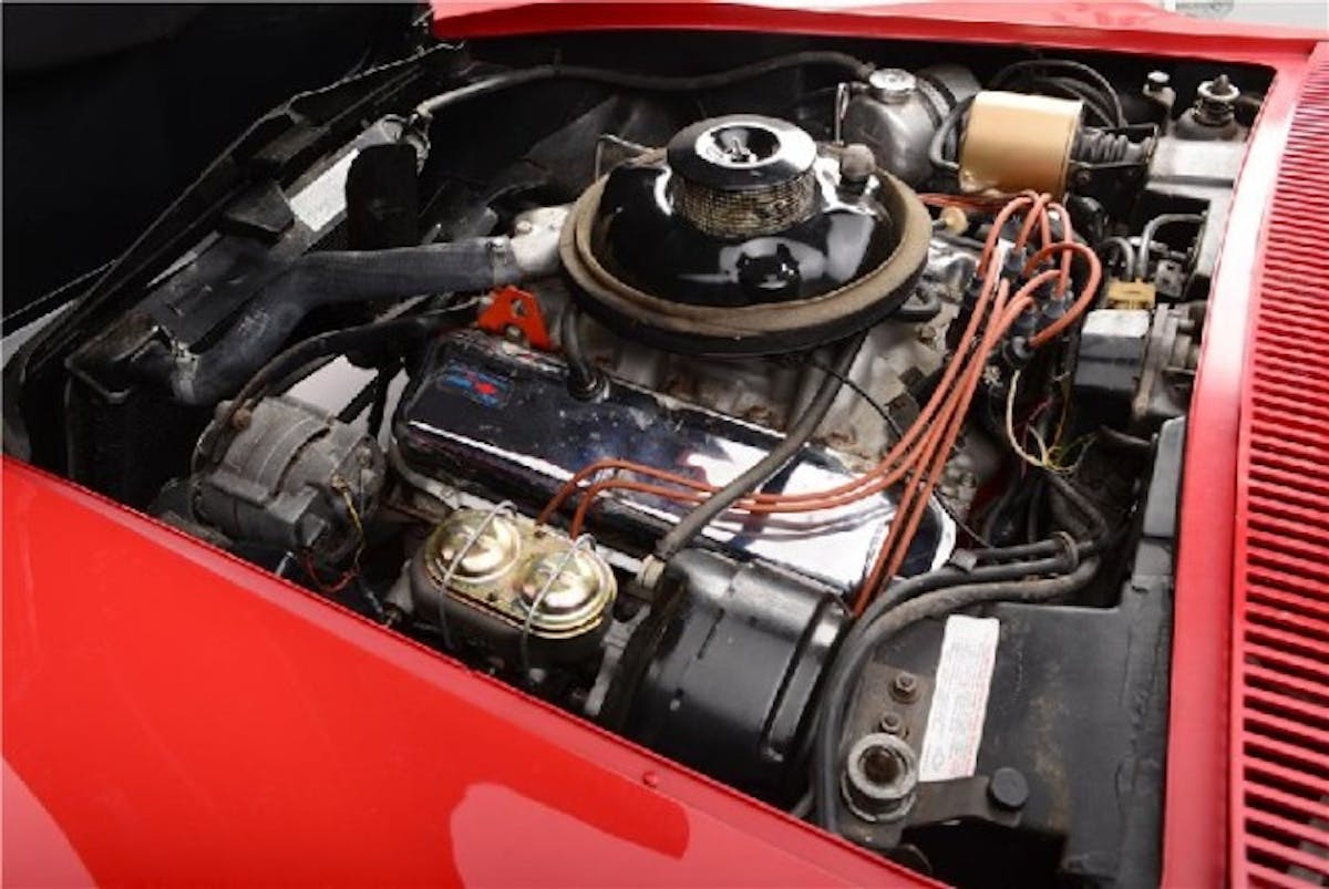 First, it’s a two-owner car, and the last owner kept it safely garaged for the last 38 years. This classic Vette has never been in an accident, and the original spare tire has never even touched the ground, according to the consignor. Heck, the original factory Build Sheet is still glued to the gas tank!