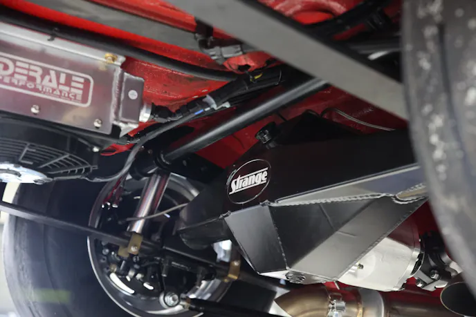 Backing up our boosted L8T is a TH400 transmission and converter from ATI Performance Products. The transmission is rated to handle up to 1,500 horsepower and features a transbrake and a manual valve body with a clean neutral. Power is then sent to the Strange Engineering fabricated 9-inch rearend built with Strange’s Ultra-HD center-section, Pro Gear ring and pinion gears, and 40-spline axles.