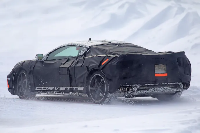 While we’re not sure why the mid-engine car always seems to be testing in the snow, we assume it’s because GM is busy with validation testing on the new Gen VI LT platform which motivates the new car. The twin-turbo, dual-overhead cam 4.2-liter V8, and the naturally-aspirated, dual-overhead cam 5.5-liter V8, need to be tested in all conditions and what better way to do that than in the frozen tundra that is currently the northern U.S.?