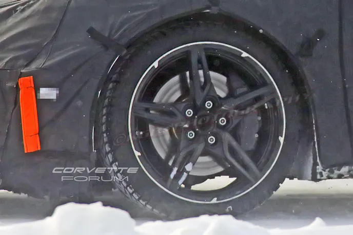 Right away you’ll notice that we finally have a matching set of wheels that differ from the snow-flake style we’ve seen on previous test mules. This is the first time we’ve seen a set of shoes on the mid-engine Corvette that actually look as if they could make it to the production car and, if you ask us, we’re seeing the final wheel design for the first time.