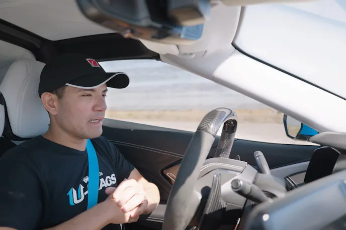 Edmunds’ U-Drags format involves a standing-start quarter-mile sprint, immediate hard braking into a 180-degree hairpin u-turn, and a flat-out race back to finish across the same starting line.