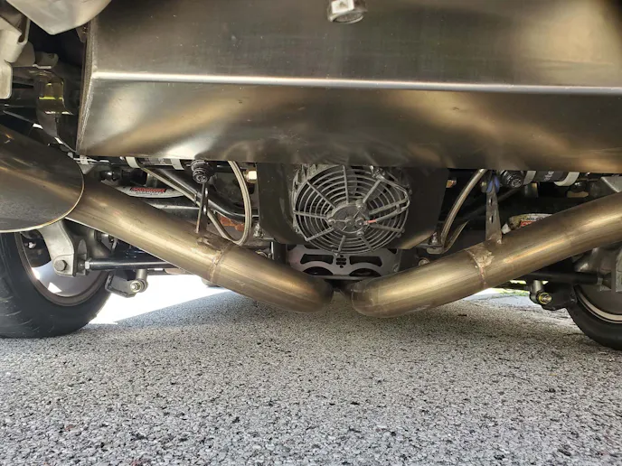 They knew the abuse that this car would be subjected to, so they set out to update the cooling system all around. For that, a half-dozen fans help keep this C4 cool. One pusher fan and four additional units direct air through the C&R Racing radiator — originally designed for the C7R — and custom-fitted it to the C4. One other air-mover helps cool the transmission with a diff-mounted cooler out back.