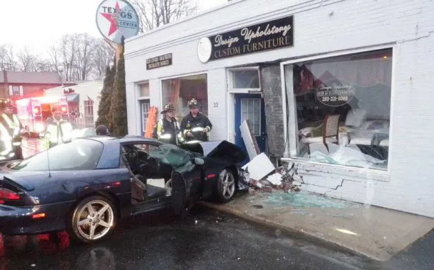 Proving the power of American muscle cars versus the 134 horsepower Prius, this Camaro Z28 inflicted some very serious damage on the brick-and-mortar Design Upholstery Custom Furniture shop in Westport, Connecticut. The bricks are cracked and the front end of the Camaro is completely smashed in. The driver, whose name and age were not released by police, claims that the gas pedal got stuck, causing her to unintentionally accelerate into the side of this building.