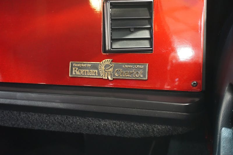 This particular C4 also reportedly wears 26 coats of “Candy Apple Red” paint, poured over what appears to be a somewhat popular widebody kit from the era called the “Stalker Widebody Kit.” Various companies offered widebody kits in hopes of cashing in on the widebody craze when these cars were valuable enough to spend over $5k on a body upgrade. This car was reportedly done by Jerry Roman of Roman Chariot in Cleveland Ohio and the dash plaque says, “Made Especially For Jerry Roman.” Perhaps used as his personal business card back in the day?