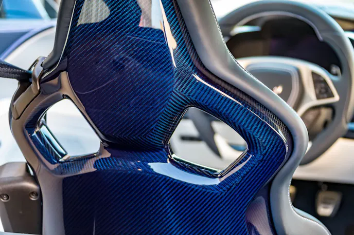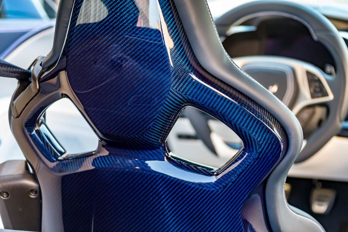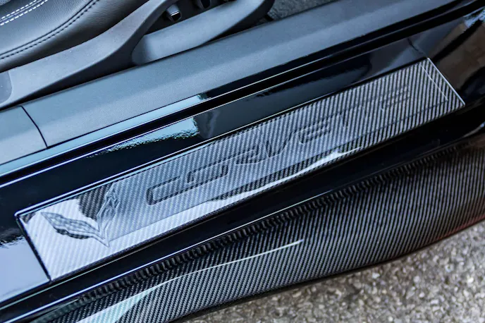 Through cutting edge developments in car craftsmanship, Caravaggio Corvettes has designed a unique exterior that sets this featured Corvette apart from any other sports car on the road. The custom blue carbon fiber Aero Kit plays off of the interior carbon accents, while giving the exterior of the car a captivating look.”