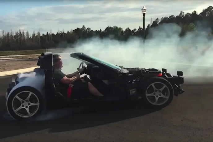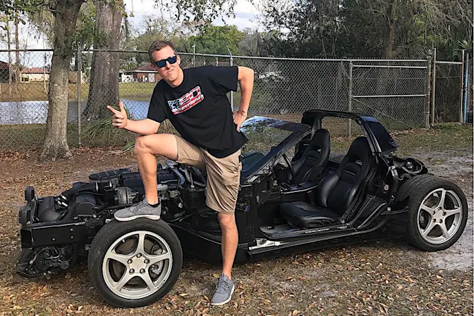 He bought a new car. Well, basically, a giant Corvette go kart. A 2001 C5 Corvette with little to no body panels to be exact.