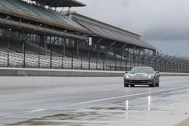 White borrowed a C7 Corvette to escort Melissa in one of the Gold Laps sessions that takes place at the annual Bloomington Gold Show. Lining up at the back of the pack after completing two laps around the world famous speedway, White headed down pit road towards the yard of bricks, stopping at Victory Circle where he offered his hand in marriage.