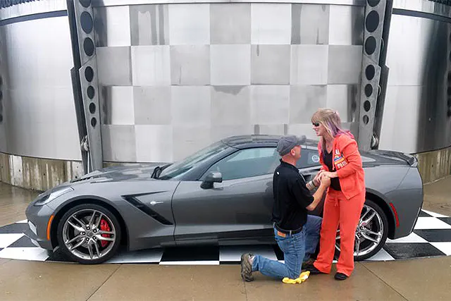effort into asking a simple question is someone who really cares about the answer. A car wrangler for Chevrolet, and maintenance man for the GM heritage Collection, White wanted to create a special day for his lady love that would not soon be forgotten. They both share a passion for the Corvette and motorsports, so this seemed like the perfect location.